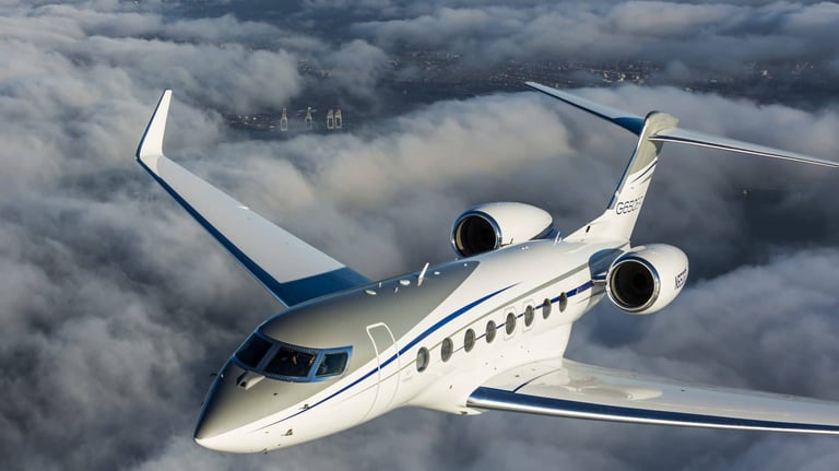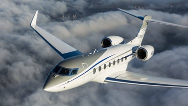 A long-range, large-cabin jet accommodating up to 16 passengers, known for its advanced technology and comfort