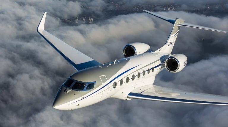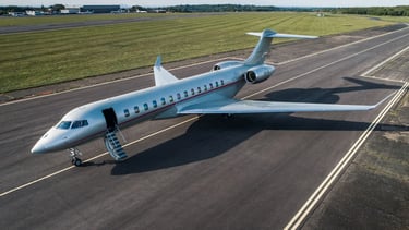 A heavy jet offering ultra-luxury and long-haul capabilities, seating up to 18 passengers with exceptional range